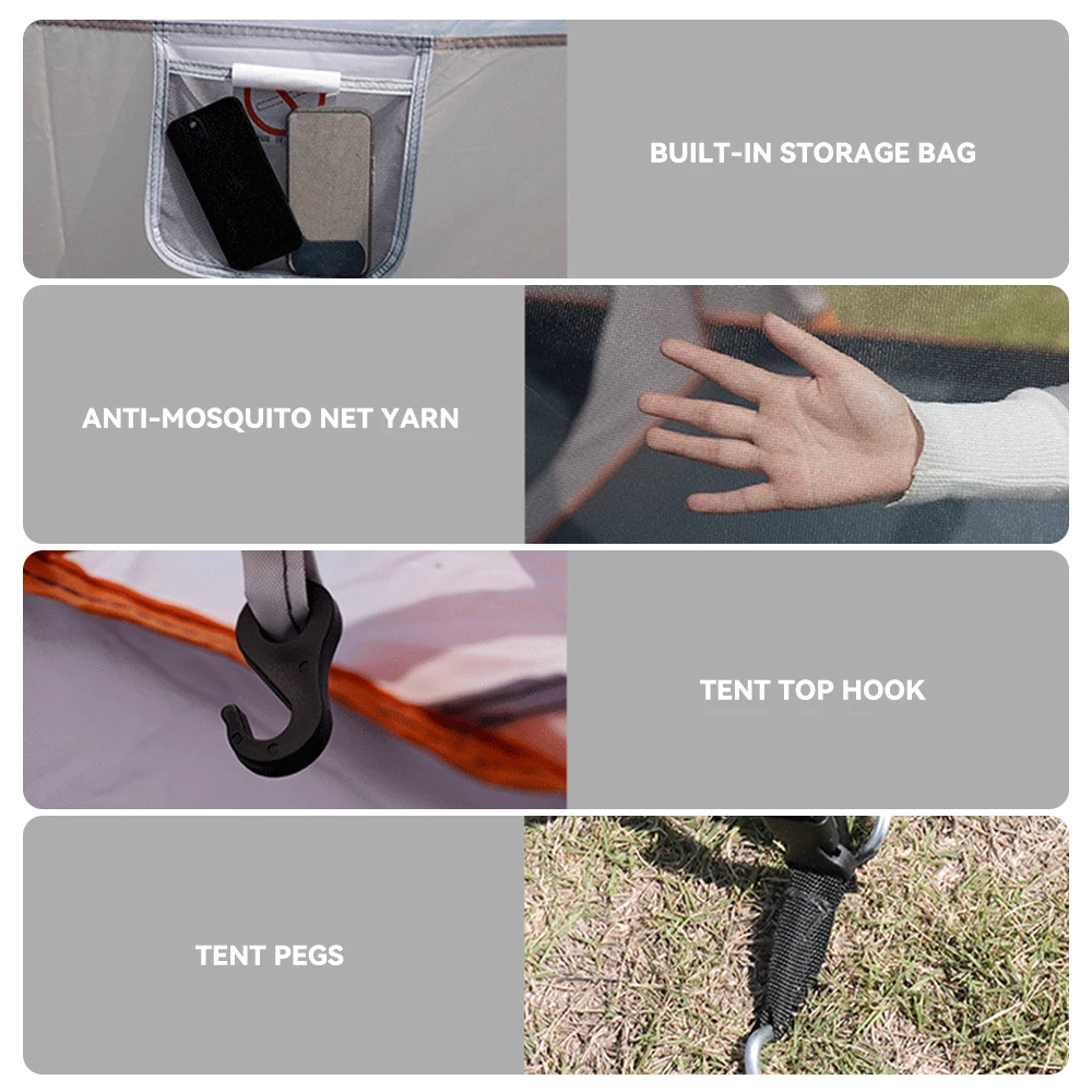 • Toit et tapis de sol : Fabriqués en polyester haute densité avec un indice d’imperméabilité renforcé (plus de 3000 mm). Même lors d’un orage estival surprenant, vous restez au sec.